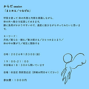 心と体をほぐす方法をさぐる、動き・ことば・音をもちいたセッション etc